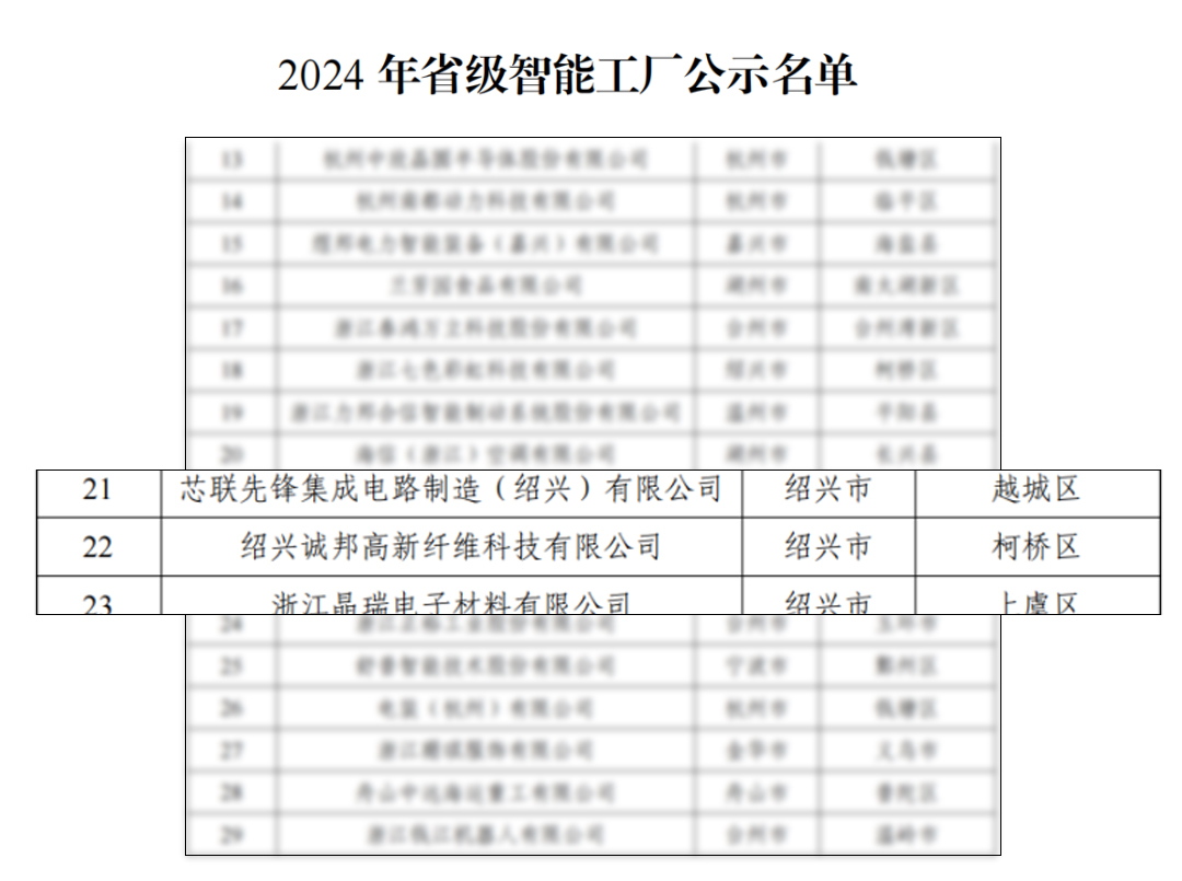 根据《浙江省经济和信息化厅关于开展2024年浙江省未来工厂和智能工厂、数字化车间评定工作的通知》要求,经企业自主申报、各地审核推荐和专家评审等程序,浙江诚邦高新纤维科技有限公司荣获2024年浙江省智能工厂。